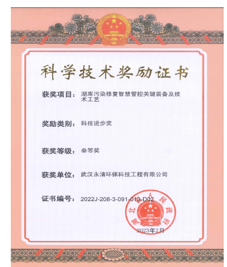 湖庫污染修復(fù)智慧管控關(guān)鍵裝備及技術(shù)工藝喜獲2022年湖北省科技進(jìn)步獎(jiǎng)